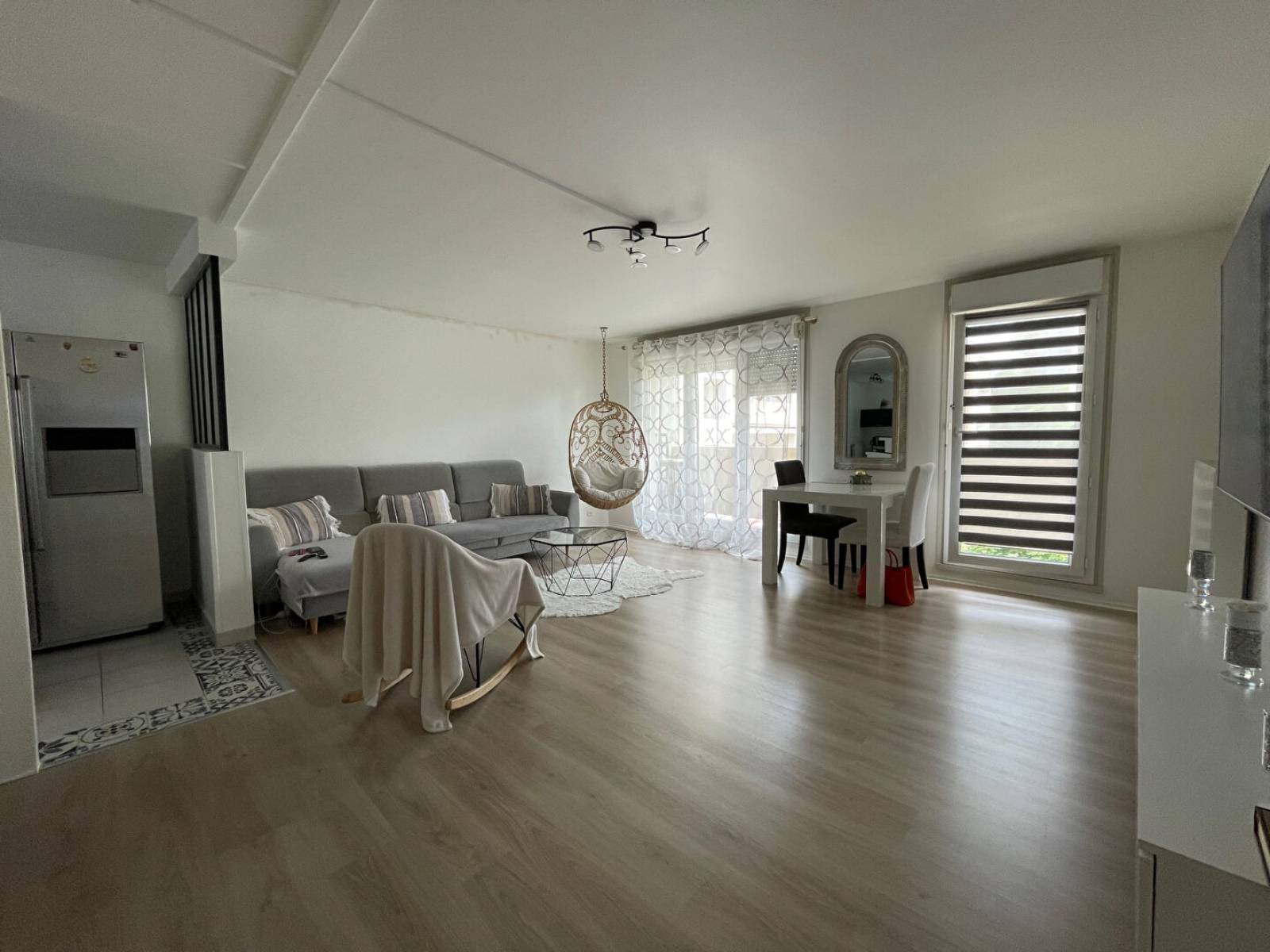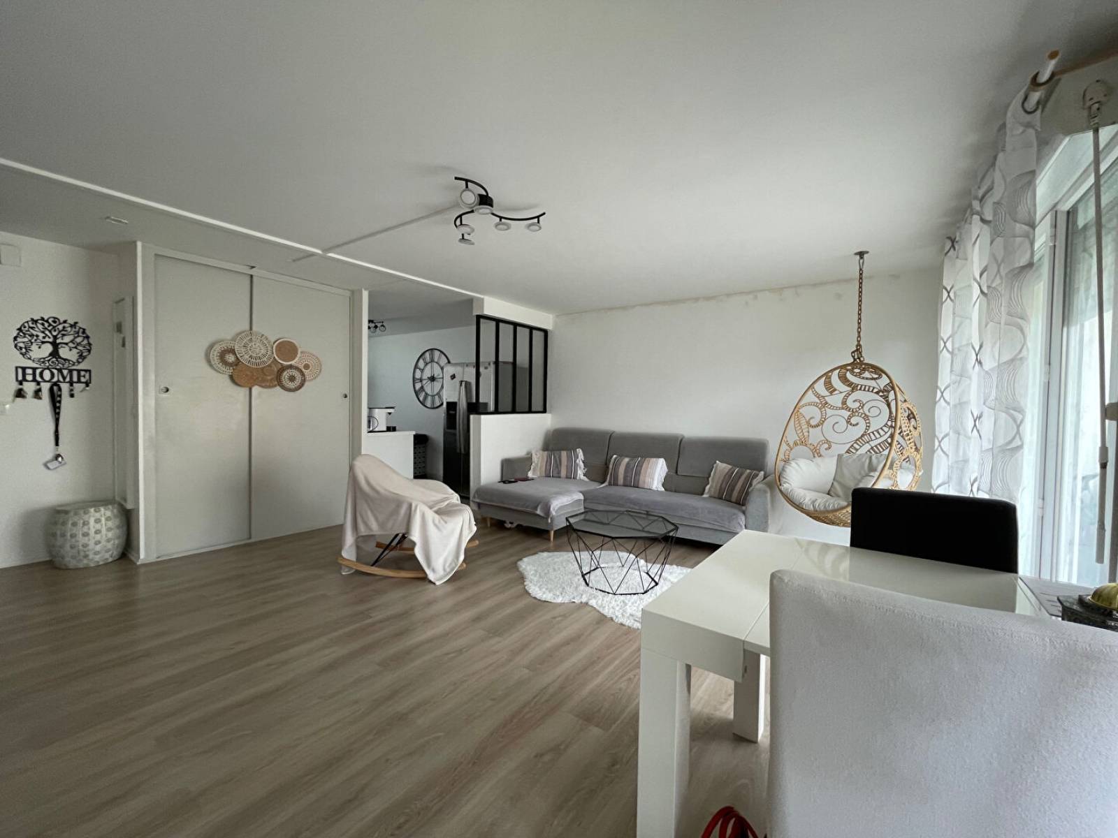 Bel appartement de type F2 de 58 m2 dans résidence sécurisée avec parc pour enfants, comprenant une entrée, un séjour double avec accès balcon et rangements, une cuisine aménagée, un couloir desservant une chambres, une salle de bains et des wc.